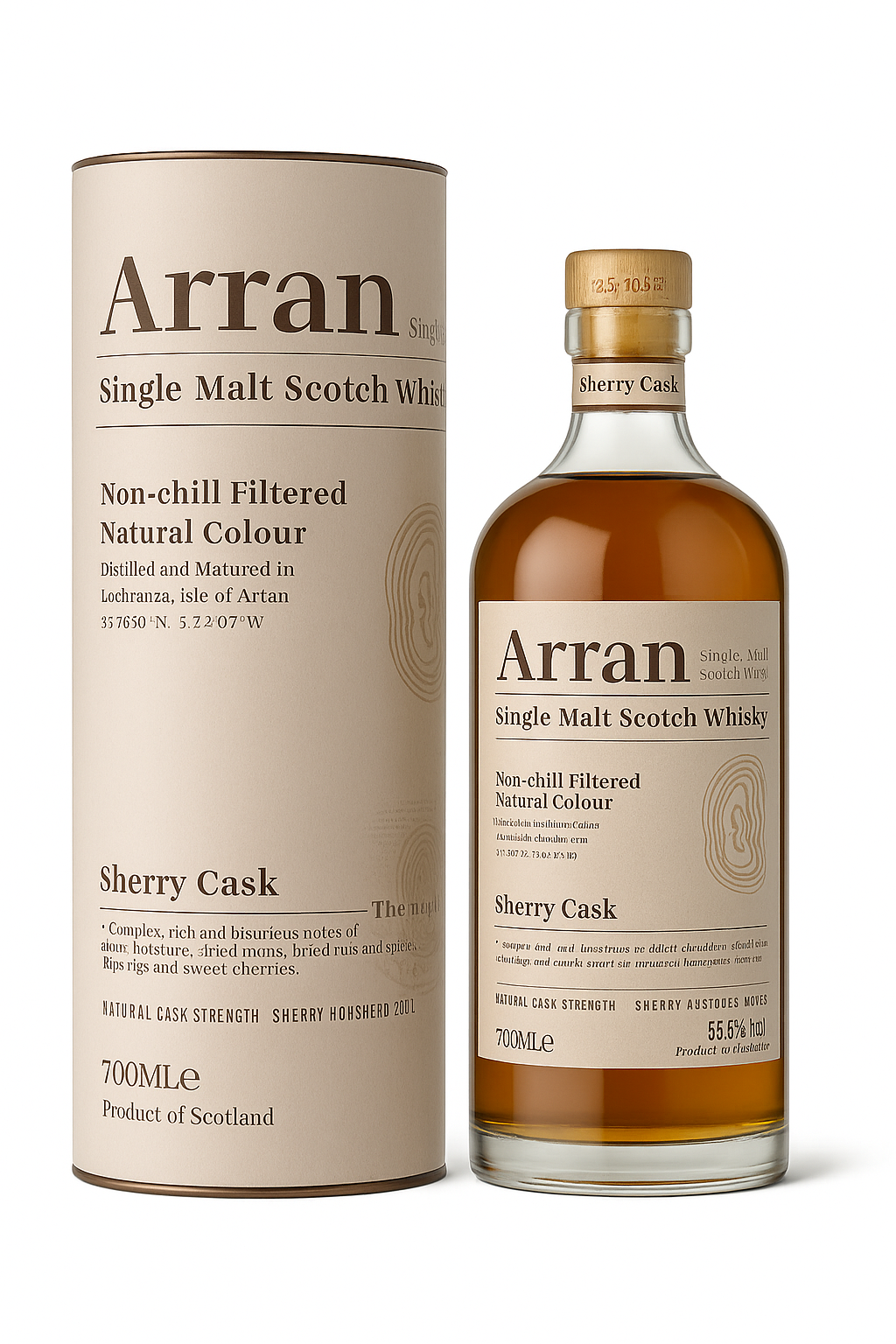 Arran Sherry Cask er en kraftfuld og fyldig single malt fra Isle of Arran Distillery, aftappet ved naturlig fadstyrke. Whiskyen er udelukkende modnet på nøje udvalgte sherryfade, hvilket giver en intens og kompleks karakter. Du møder dybe aromaer af tørrede frugter, rosiner, modne kirsebær og varme krydderier, som smelter sammen med noter af mørk chokolade og ristede nødder. Uden kuldefiltrering og uden tilsat farve leveres en autentisk whiskyoplevelse i sin reneste form, perfekt til kendere, der sætter pris på kraftfuld smag og naturlig balance.