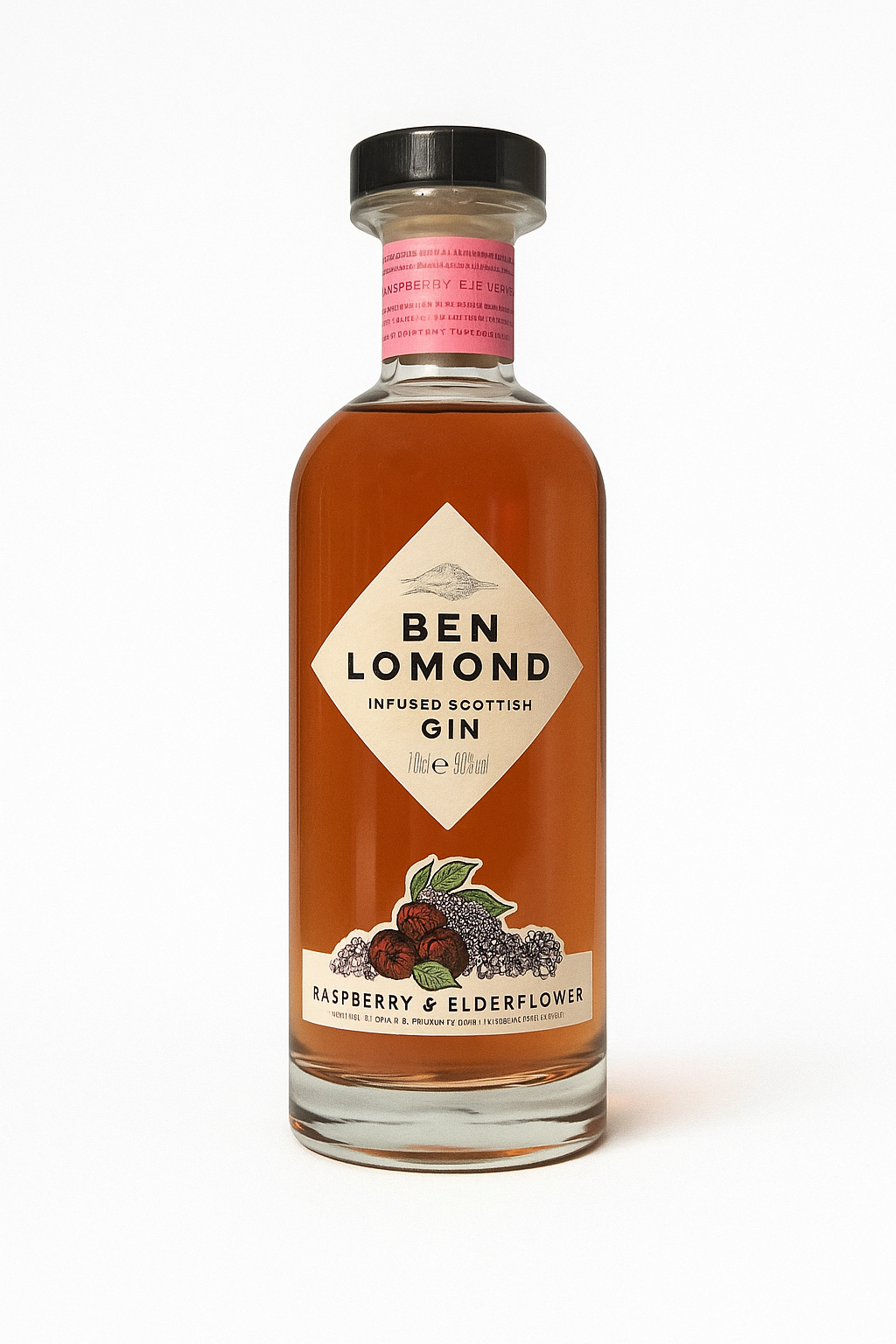 Ben Lomond Raspberry & Elderflower Gin er en frisk og frugtagtig skotsk gin, der henter inspiration fra de vilde bær og blomster omkring Ben Lomond i Skotland. Den er infuseret med saftige hindbær og delikate hyldeblomster, hvilket giver en perfekt balance mellem sødme, floral friskhed og den klassiske ginbase med enebær.