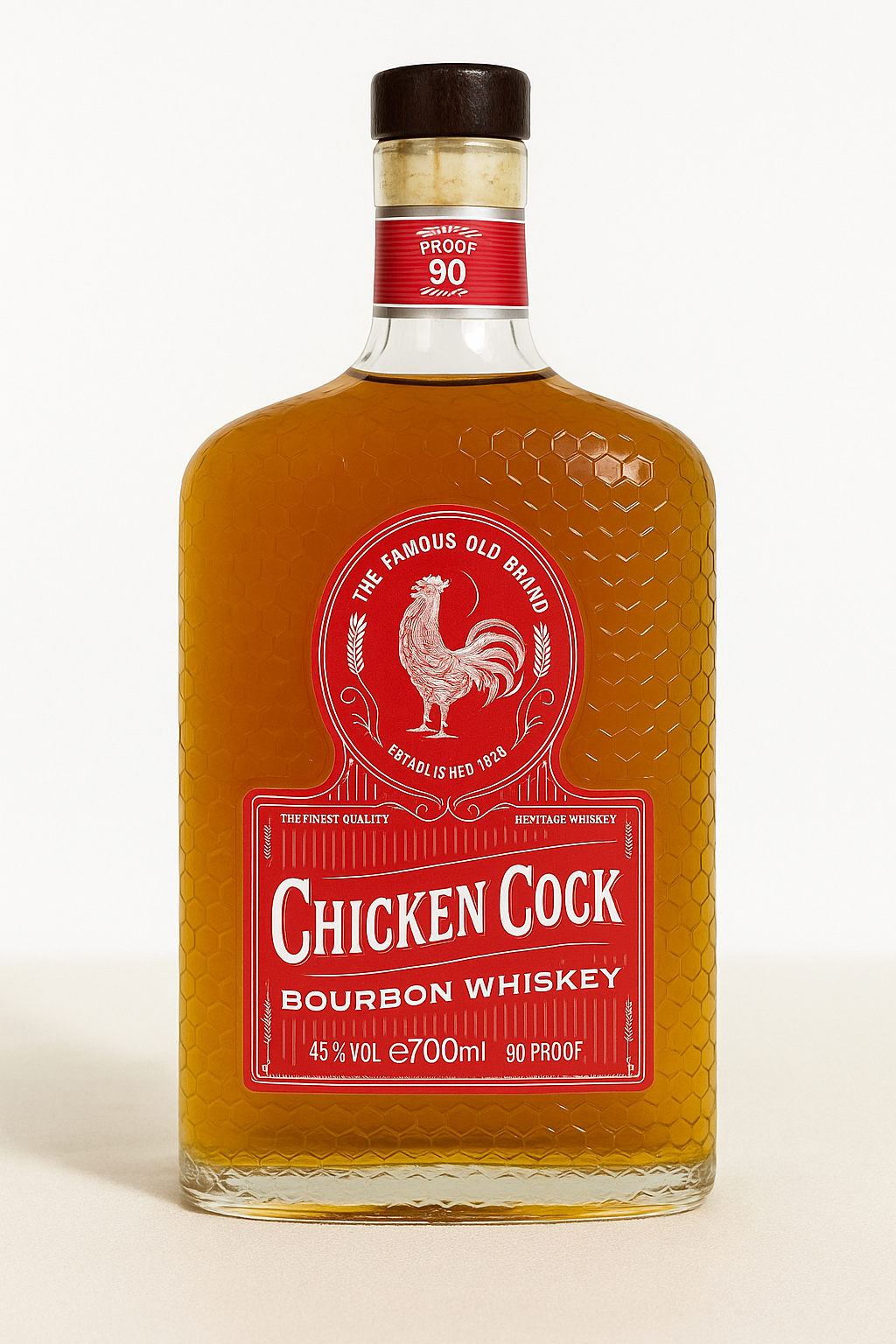 Chicken Cock Bourbon Whiskey er et ikonisk amerikansk brand med rødder tilbage til 1828 og en stolt tradition som en af de mest legendariske bourbons fra Kentucky. Denne bourbon er tappet ved 90 proof og byder på klassiske noter af karamel, vanilje og egetræ, afbalanceret med et strejf af krydderier og sødme. Den karakteristiske flaske med bikubemønster fremhæver brandets historie og autenticitet. Perfekt at nyde rent, med en isterning eller i klassiske bourbon-cocktails.