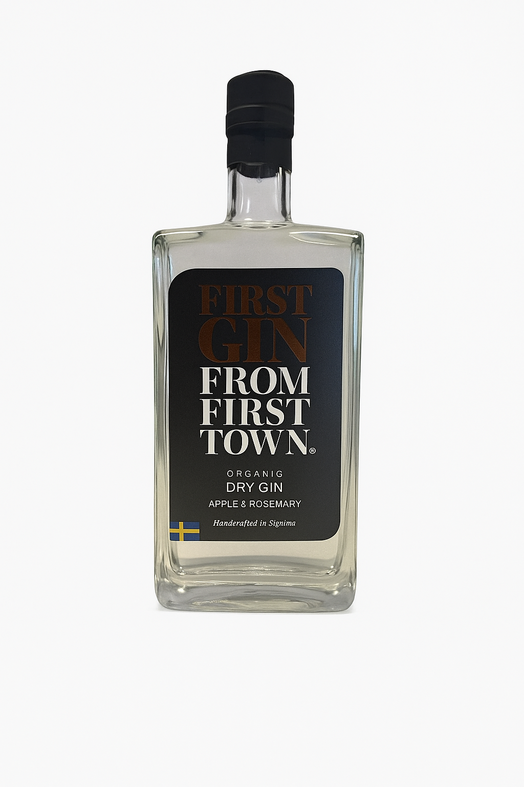 First Gin from First Town er en økologisk og håndlavet gin fra Signima i Sverige. Denne dry gin skiller sig ud ved at kombinere klassiske botanicals med et unikt nordisk twist af æble og rosmarin, hvilket skaber en frisk og aromatisk smagsprofil.