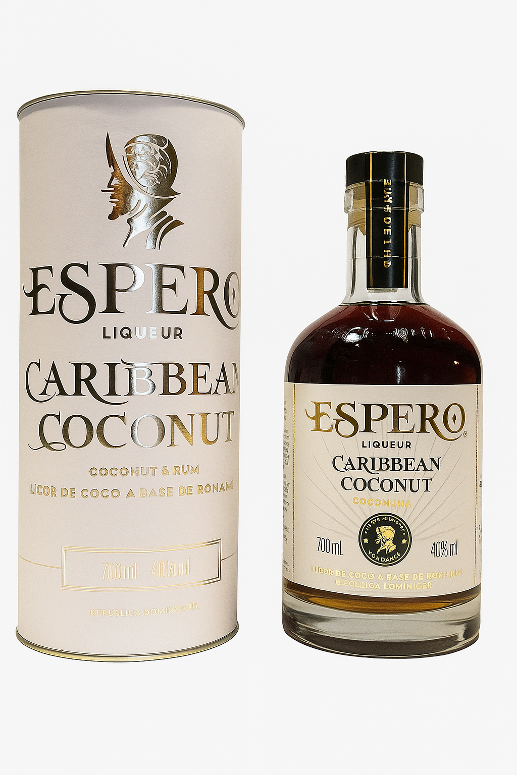 Ron Espero Caribbean Coconut er en forførende romlikør fra Den Dominikanske Republik, hvor klassisk rom møder den eksotiske smag af kokosnød. Resultatet er en blød, sød og fyldig oplevelse, der bringer de tropiske øer direkte til glasset.
