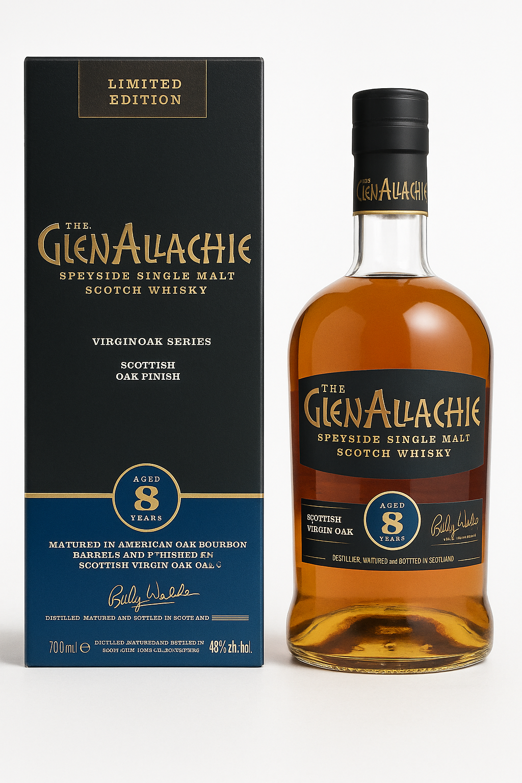 The GlenAllachie 8 Years Scottish Virgin Oak Finish er en del af destilleriets Virgin Oak Series og præsenterer en unik kombination af klassisk Speyside-karakter og friskhed fra skotsk virgin oak. Whiskyen har først lagret på amerikanske bourbonfade, hvorefter den har fået sin afslutning på nye skotske egetræsfade, der tilfører en markant dybde og kompleksitet. Duften byder på honning, krydderier og vanilje, mens smagen er rig på noter af karamel, nødder, bagt frugt og et hint af egetræskrydderi. En limited edition whisky, der fremhæver håndværk og innovation i perfekt balance.