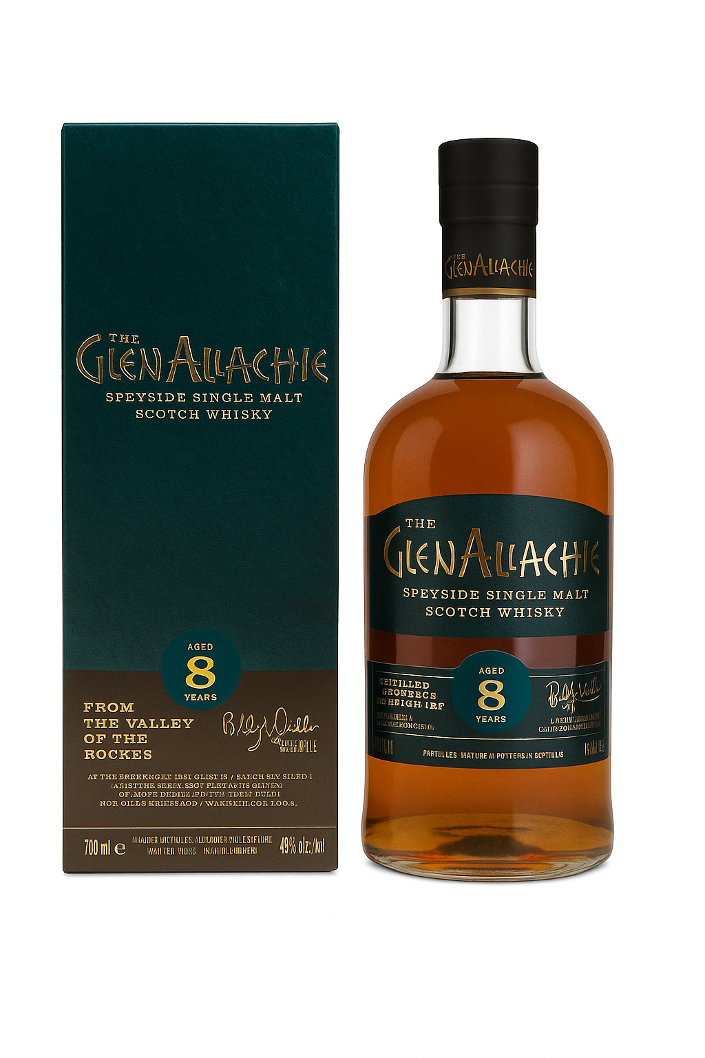 The GlenAllachie 8 Years er en klassisk Speyside single malt, skabt af Master Distiller Billy Walker, der er kendt for sin evne til at forfine whiskylagring. Denne whisky er lagret på en kombination af nøje udvalgte fade, herunder sherry, virgin oak og red wine barriques, hvilket giver en kompleks og nuanceret smagsprofil. I glasset mødes du af noter af honning, karamel, mørke bær, kanel og et strejf af kakao, som afrundes af en blød, krydret finish. En velbalanceret whisky, der både er tilgængelig for nye whiskyelskere og interessant for de mere erfarne.